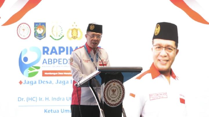 Ketua Umum Dewan Pimpinan Pusat ABPEDNAS Indonesia (Asosiasi Badan Permusyawaratan Desa Nasional) Indra Utama, dalam Rapat Pimpinan Nasional (Rapimnas) yang digelar di Grand Anara Hotel, Terminal 3 Domestik Bandara Soekarno-Hatta, Tangerang, pada Ahad, 14 Desember 2025. Dok. ABPEDNAS